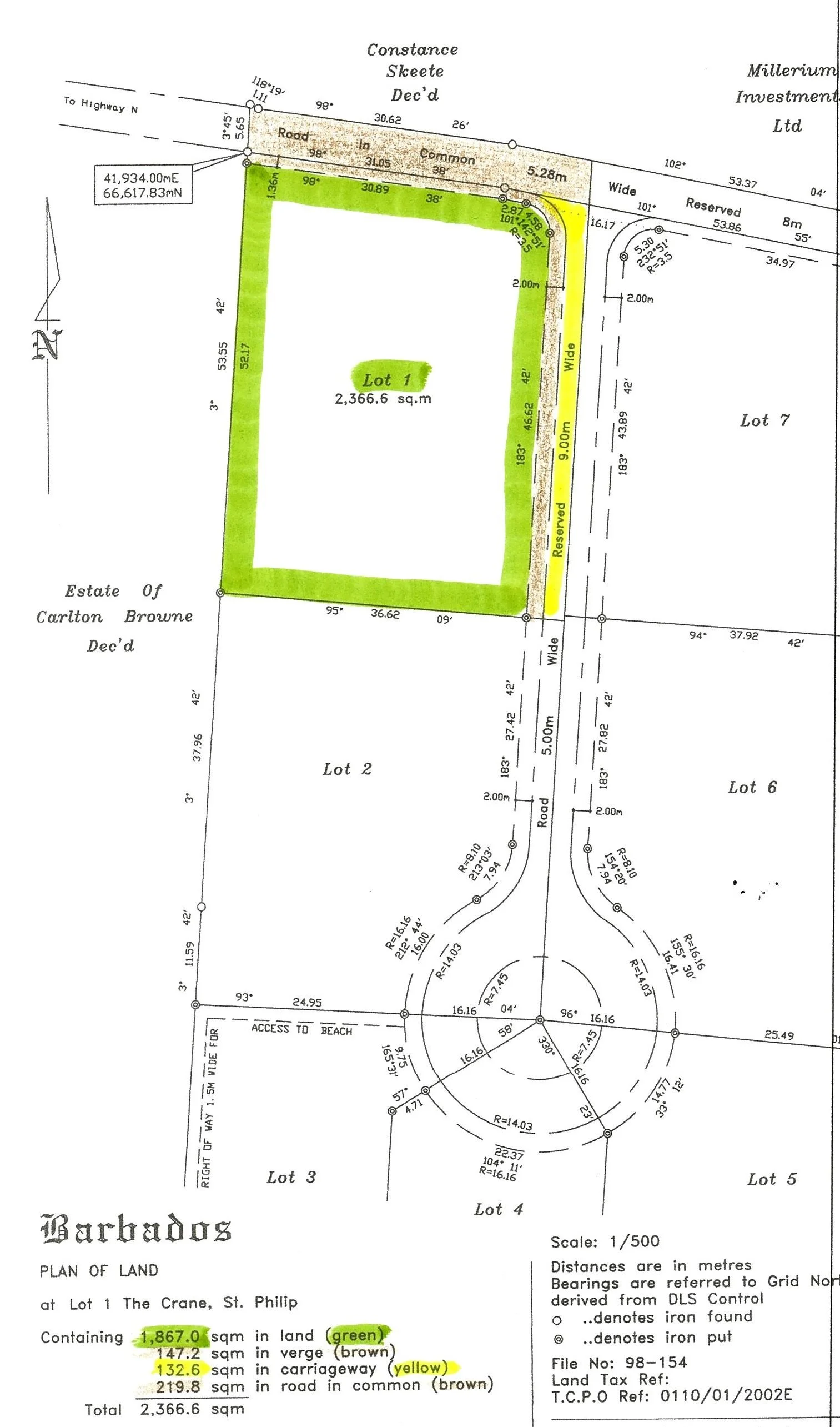 This large lot is located in Crane Cliff Development in St, Philip just a few minutes drive from both the Crane beach and Foul Bay beach. It is within walking distance of the Crane Resort with its 4 restaurants and shops, 10 minutes drive to the airport and a similar distance to Six Cross Roads the main banking and shopping hub in St. Philip. This is a small subdivision of just 7 large sized lots, 3 of which are on the cliff front, which already have been purchased with homes constructed thereon.